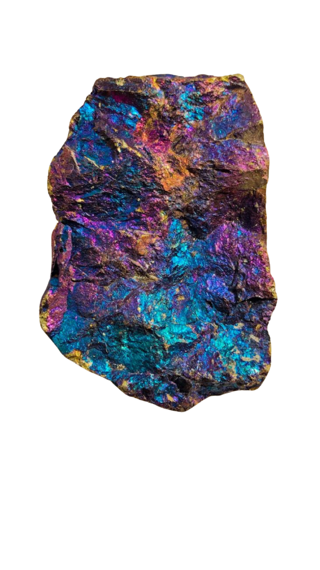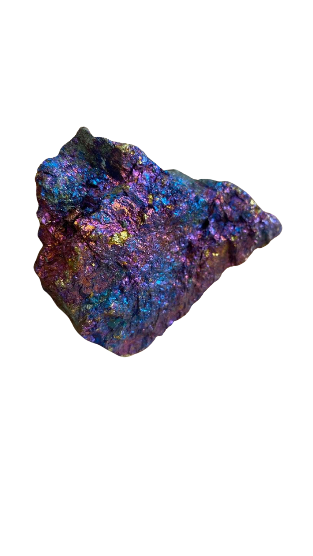 La calcopirita: Son piedras únicas llenas de brillo místico, cada pieza de Calcopirita parece una joya celestial. Es conocida como la piedra del pavo real por sus tonos tornasolados que van del azul eléctrico al violeta, pasando por dorados, verdes y fucsias, es como un arcoíris en forma de piedra, despierta tu luz interior, esta gema es una aliada poderosa para abrir caminos espirituales y atraer abundancia.