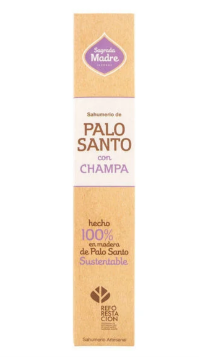 Incienso de Palo Santo con champa, varitas artesanales elaboradas por sagrada madre incense, es una marca argentina muy conocida por sus productos ecológicos, naturales y sostenibles y de una altísima calidad. Esta combinación une la madera sagrada del palo santo con el exótico y profundo aroma de la flor de champa, una flor sagrada utilizada tradicionalmente en rituales hindúes y budistas por sus cualidades meditativas y armonizadoras.